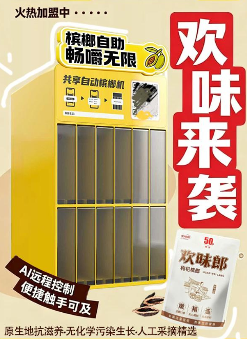欢味郎无人售货槟榔机以 48×32×25cm 的黄金尺寸,在空间适应性方面展现出独特优势,成功进驻千种场景。这不仅为槟榔销售创造了更多机会,也为品牌发展奠定了坚实基础,在商业领域中书写着属于自己的辉煌篇章。